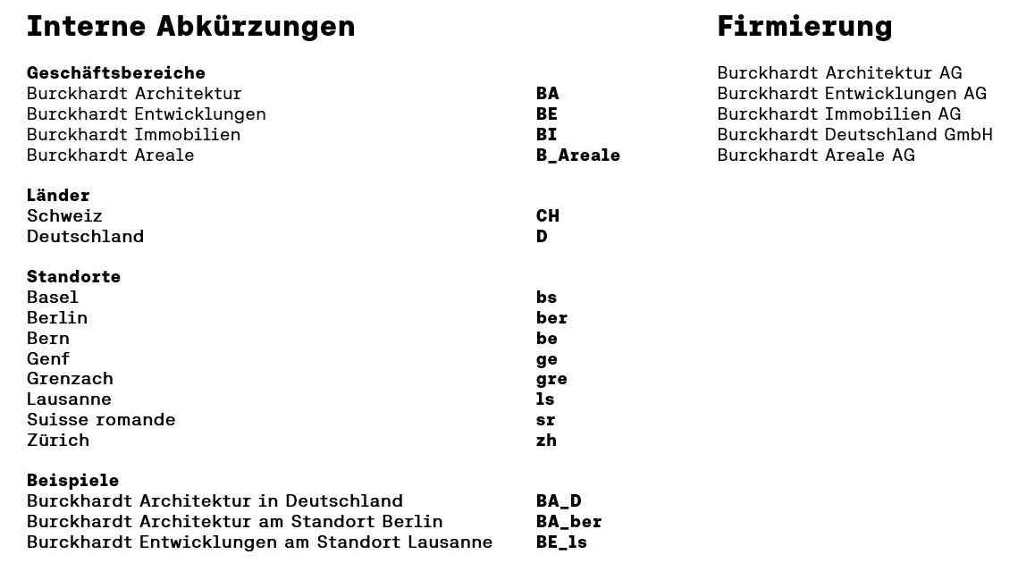 Alle Abkürzungen sind unilingual und werden in Französisch und Englisch beibehalten. Sie dienen lediglich der internen Verwendung.