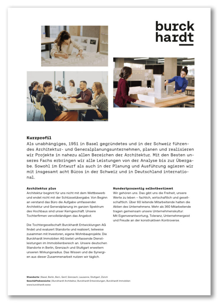 Das Kurzportrait ist auf Deutsch/Englisch/Französisch in SharePoint zu finden.